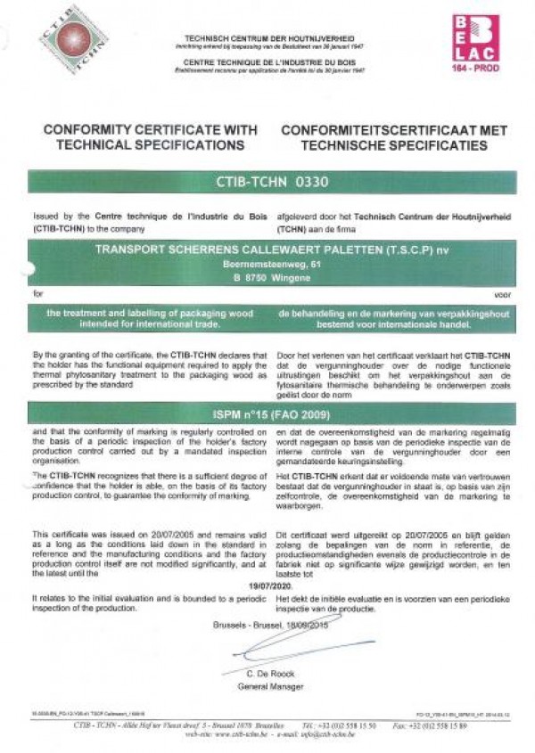 De warmtebehandeling bestaat uit een verhitting van de houten paletten tot 56 graden tot in de kern van het hout en dit voor minimum 30 minuten.